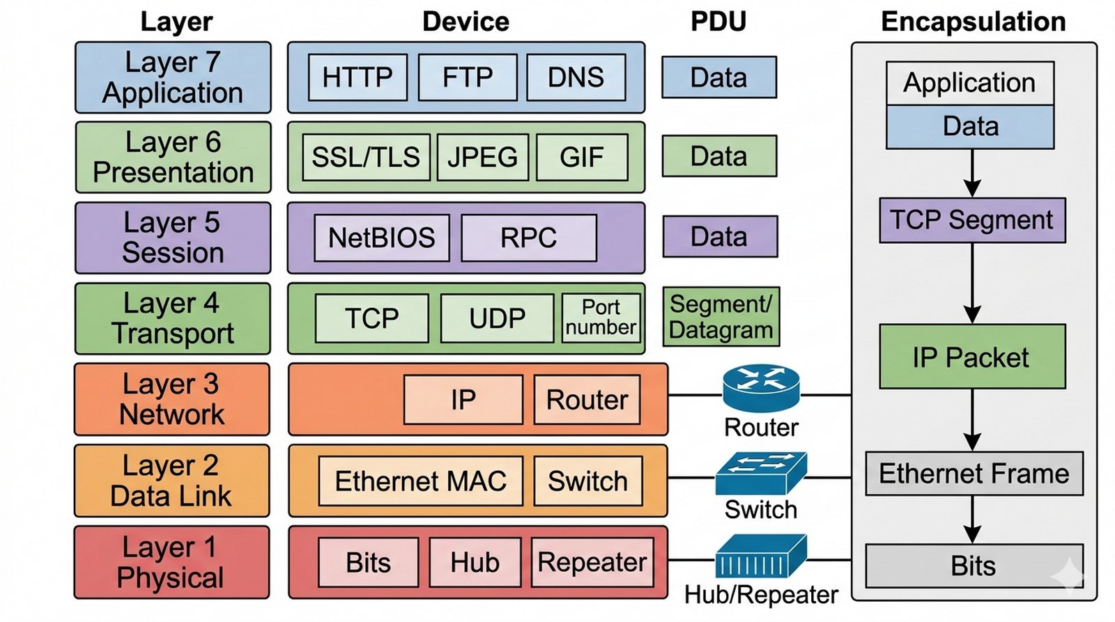 Jako młody inżynier sieciowy w dziale IT dużej korporacji musisz przygotować materiał szkoleniowy dla nowo przyjętych stażystów, którzy rozpoczynają pracę w dziale infrastruktury sieciowej. Twoim celem jest stworzenie dokumentu, który w przystępny sposób wyjaśni, dlaczego używamy modelu warstwowego do analizy sieci i dlaczego router "widzi" więcej niż switch, a switch więcej niż hub. Stażyści mają podstawową wiedzę z informatyki, ale nigdy nie zajmowali się profesjonalnie sieciami. Dokument powinien zawierać praktyczne przykłady, które pozwolą im zrozumieć, jak dane przepływają przez kolejne warstwy podczas komunikacji między dwoma komputerami w różnych sieciach. Będziesz odpowiedzialny za merytoryczną poprawność materiału — od tego zależy, jak szybko nowi pracownicy opanują podstawy diagnostyki sieciowej.