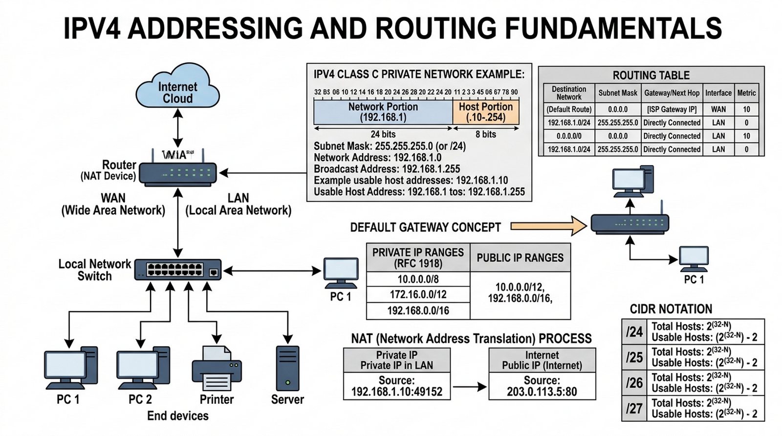 W4 Warstwa sieciowa, adresacja IPv4, maska podsieci, brama domyślna, rola routera, tablica routingu.