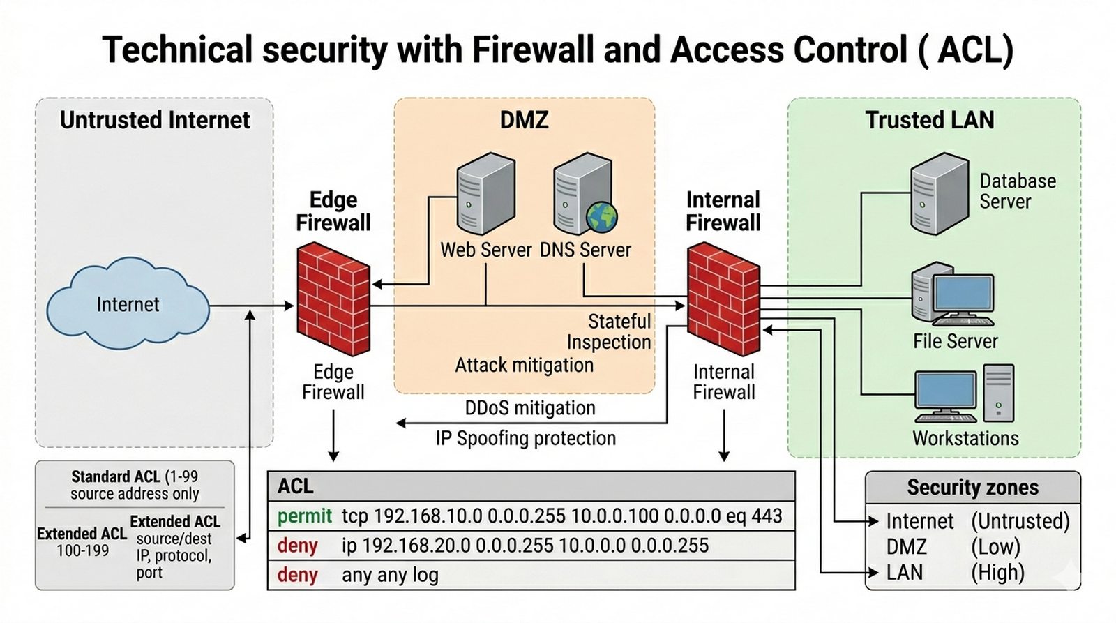 W4 W5 Listy ACL, filtrowanie ruchu, zapory sieciowe (Firewall), strefy bezpieczeństwa, ochrona przed atakami.