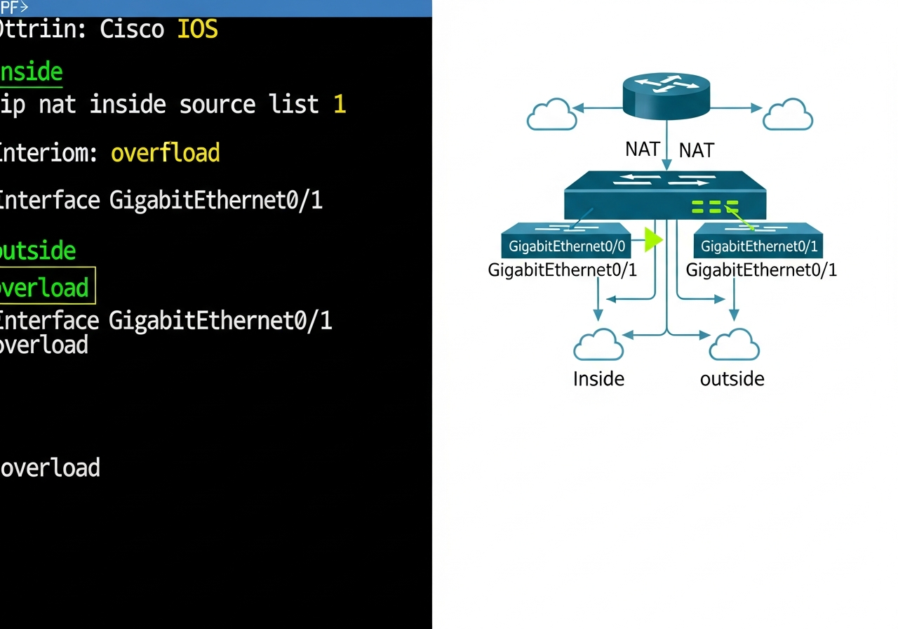 Router(config)# ip nat inside source list 1 interface Gi0/1 overload